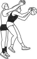 Вырывание мяча. Если защитнику удалось захватить мяч, то прежде всего надо попытаться вырвать его из рук соперника. Для этого нужно захватить мяч возможно глубже двумя руками, а затем резко рвануть к себе, сделав одновременно поворот туловищем. Мяч надо поворачивать вокруг горизонтальной оси, что облегчает преодоление сопротивления соперника.