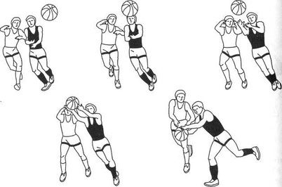 Рис 20. Накрывание мяча сзади при броске в корзину.