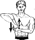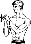 5. Поднимите вверх правую руку, согнутую в локте (3.5) и упритесь кистью в левую ладонь. Разгибая правую руку, направьте ее вниз, преодолевая сопротивление левой руки.