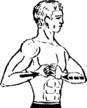 4. Опираясь правой рукой в ладонь левой, выпрямите правую руку вперед, при этом левая рука создает сопротивление (3.4).