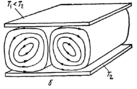 Вследствие теплового расширения жидкость расслаивается, причем часть жидкости, находящаяся ближе к нижней плоскости, характеризуется пониженной плотностью по сравнению с верхними слоями. Это приводит к градиенту плотности, направленному противоположно силе тяжести. Легко понять, что такая конфигурация потенциально неустойчива. Рассмотрим, например, малый объем жидкости вблизи нижней плоскости. Вообразим теперь, что этот элемент объема немного смещается вверх вследствие возмущения. Находясь теперь в более холодной и, следовательно, в более плотной области, этот элемент будет испытывать направленную вверх архимедову силу, которая будет стремиться усилить восходящее движение С другой стороны, если находящаяся вначале у верхней плоскости малая капля смещается вниз, то она проникнет в область пониженной плотности, и архимедова сила будет ускорять нисходящее движение. Поэтому в принципе ясно, что в жидкости могут возникать восходящие и нисходящие потоки, как это и наблюдается в эксперименте.