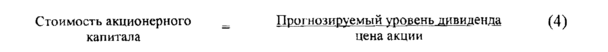 Применяя данную формулу в отечественной практике, отметим два существенных, на наш взгляд, момента. Во-первых, в условиях нестабильности политики и экономики предугадать уровень дивиденда достаточно проблематично. Во-вторых, если в международной практике дивиденды выплачиваются из прибыли, оставшейся после вычета налогов, то у нас доходы в виде дивидендов, полученных по акциям, подлежат налогообложению отдельно по ставке 15%.