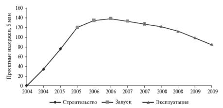 На первом этапе риск достигает наивысшего значения — средства начинают перетекать от финансирующих сторон к проектной компании. Пока что проект не генерирует никаких денежных средств, не осуществляются процентные платежи, и во многих случаях заемщику дозволяется «свертывать» («roll up») процентные выплаты или же произвести дополнительные выборки для произведения процентных платежей. Продолжительность этого этапа варьируется от нескольких месяцев (например, при строительстве небольшой платной дороги) до нескольких лет (например, при создании тоннеля под Ла-Маншем). Кредиторы становятся более уязвимыми, поскольку финансовые средства уже выбираются, а доходные денежные потоки пока не появились.