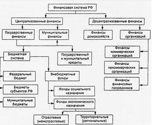 В учебнике "Финансы" выпущенному под редакцией В.В. Ковалева говорится, что финансовая система может быть подразделена на три взаимосвязанные подсистемы, обеспечивающие формирование и использование финансовых ресурсов соответственно: (а) у хозяйствующих субъектов, (б) у населения, (в) у государства и органов местного самоуправления и приведена схема. (рис.3) Централизованные финансы представлены бюджетной системой, и также государственным и муниципальным кредитом. среди децентрализованных финансов ключевое место принадлежит финансам коммерческих организаций, особое значение имеют финансы финансовых посредников, финансы домохозяйств так же имеют значительную роль.
