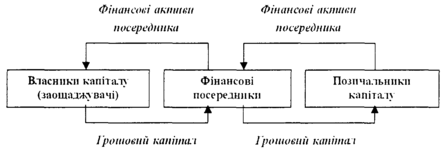 Рис.3. Механізм опосередкованого фінансування шляхом випуску фінансовим посередником власних фінансових активів
