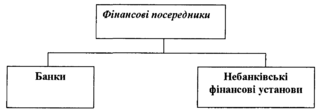 Українське законодавство поділяє фінансових посередників на два типи: банківські установи та небанківські фінансові установи. До банківських установ належать банки, небанківськими фінансовими установами є: кредитні спілки, ломбарди, довірчі товариства, страхові та фінансові компанії, інститути спільного інвестування, недержавні пенсійні фонди, лізингові та факторингові компанії, торговці цінними паперами, компанії з управління активами та інші. В Україні, як і в країнах, де реалізована банківсько орієнтована модель, банкам належить ключова роль в забезпеченні фінансового посередництва Однак законодавством передбачається можливість проведення небанківськими фінансовими установами окремих банківських операцій за умови одержання ліцензії Національного банку України. Як і в більшості країн, що стали на шлях ринкових перетворень, небанківське фінансове посередництво в Україні знаходиться на стадії становлення та початкового розвитку. Активи небанківських фінансових установ є невеликими і займають незначну частку у валовому внутрішньому продукті країни, роль цих установ у фінансуванні економіки та перерозподілі капіталу залишається другорядною. Проте останніми роками спостерігаються швидкі темпи розвитку діяльності окремих видів небанківських фінансових установ і нарощування ними обсягів активних операцій. Показники діяльності небанківських фінансових установ в Україні наведені у наступній темі.