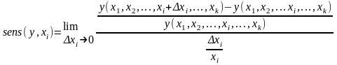 Построим количественный показатель чувствительности проекта sens(у,хi). Пусть у — некоторый критерий эффективности проекта. Он может быть функционально выражен через параметры проекта хi, т.е.