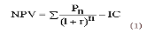 Розрахунок за формулою (1) можна проводити, якщо інвестиції здійснюють упродовж невеликого проміжку часу чи одноразово. Така ситуація має місце, наприклад, коли господарство придбало і встановило лінію з переробки сільгосппродукції. Якщо інвестиції здійснюють не одноразово, а має місце тривалий процес інвестування, розрахунки за формулою (1) будуть не зовсім коректні. Крім того, можливо, що після завершення проекту обладнання, яке відпрацювало запланований період, буде продане за своєю залишковою вартістю. У такому разі необхідно використовувати формулу: