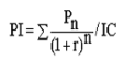Метод розрахунку чистого наведеного ефекту допомагає розраховувати його абсолютний розмір. Але абсолютний розмір NPV далеко не завжди дає правильне уявлення про економічну ефективність інвестиції. Об'єктивніше ситуацію можна оцінити, якщо зіставити NPV декількох проектів з сумою початкових інвестицій у них. Саме порівняння чистого наведеного ефекту та початкових інвестицій і лежить в основі розрахунку індексу рентабельності інвестиції. Формула його розрахунку така: