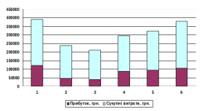 На рис. 1 наведено графік, що відбиває результати роботи підприємства за шестимісячний період.