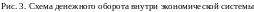 Схема денежного оборота внутри экономической системы показана на Рис.3. Овалами обозначены банковские учреждения и специализированные кредитно-финансовые институты, прямоугольниками – небанковские участники денежных операций. Стрелками показаны и соответственно пронумерованы денежные потоки, функционирующие в экономической системе. Рассмотрим эти потоки подробнее.