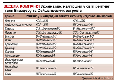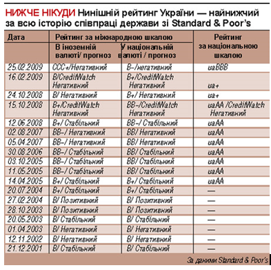 Таблиця 3 – Динаміка рейтингу України за 2001 – 2009 рр. (S&P)