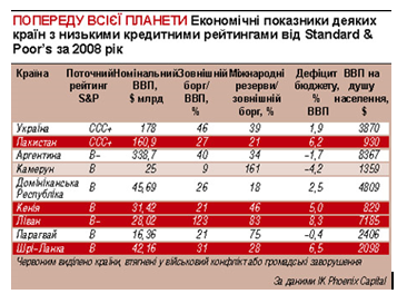 Таблиця 2 - Економічні показники деяких країн з низькими рейтингами на 01.01.09 р. (S&P)