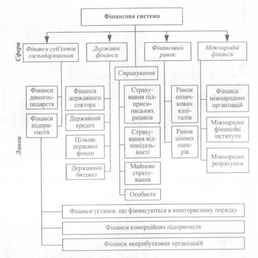 За організаційною структурою — фінансова система — сукупність — фінансових органів та інститутів, які здійснюють управління грошовими потоками. Внутрішня структура фінансової системи лежить в основі виділення органів управління фінансовою системою.