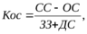 Коэффициент обеспеченности собственными оборотными средствами (Кос) рассчитывается по формуле;