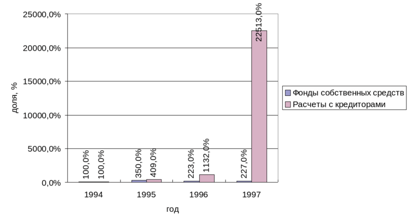 Рисунок 3.4 – Динамика пассива баланса ТОО "Дорстройсервис" к 1994 году