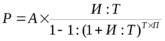 Для расчета суммы арендных платежей по финансовому лизингу используется формула аннуитетов (ежегодных платежей по конкретному займу), которая выражает взаимосвязанное действие всех условий лизингового соглашения на величину арендных платежей; суммы и срока контракта, уровня лизингового процента, периодичности платежей. Эта формула имеет следующий вид: