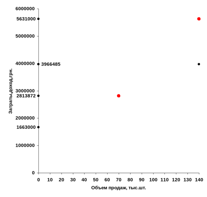 Теперь можно рассчитать критический объём сбыта продукции (точку безубыточности):