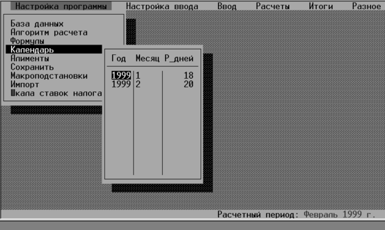 Календарь, собственно это список количества рабочих дней по месяцам. Программа берет расчетную дату и по календарю определяет количество рабочих дней для данного расчетного периода. (см.рис. 4)