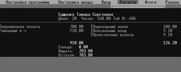 Начислено: 910.00 Удержано: 126.20