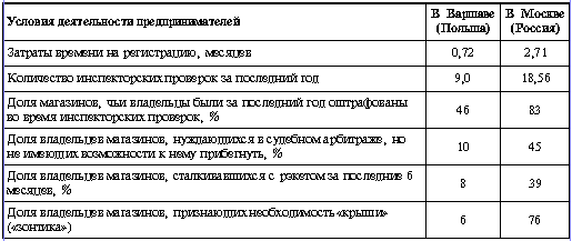 аблица 3 Сравнение условий развития мелкого торгового бизнеса в Москве и Варшаве, 1996 г