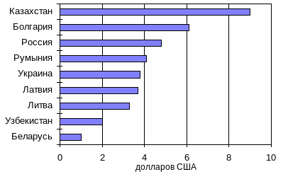 Мнение иностранных инвесторов относительно качества инвестиционного климата в Беларуси по сравнению с другими странами бывшего Советского Союза и странами Восточной Европы вполне очевидно из рисунка 6. Эта картина является очень драматичной, если уровень инвестиций на душу населения в Беларуси сравнивать с такими странами, как Словения и Польша. Если в Беларуси инвестиции составляют лишь 1 доллар США на человека, то Словения и Польша привлекают около 50 долларов США, а Чешская Республика и Эстония – около 100 долларов США на человека в год. Эти страны едва ли имеют природно–экономические преимущества перед Беларусью с ее непревзойденным географическим положением, тесными связями и хорошим доступом как к восточным, так и западным рынкам, квалифицированной рабочей силой и отличной базовой производственной инфраструктурой. Нет сомнений в том, что Беларусь обладает огромным потенциалом для расширения притока прямых иностранных инвестиций только за счет улучшения инвестиционного климата.