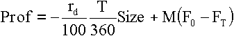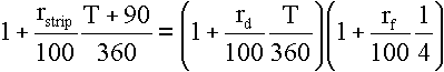 В декабре 1981 года на Чикагской фьючерсной бирже был введен фьючерсный контракт, основанный на трехмесячном евродолларовом депозите размера $1000000. Это фьючерсный контракт с расчетом за наличные, не предусматривающий никакой поставки наличного финансового инструмента по истечении контракта. В настоящее время одним из наиболее существенных способов использования этого фьючерса является арбитраж между наличными и фьючерсными позициями, путем создания синтетического инструмента, названного "strip". Известно, что большинство торговцев евродолларовыми фьючерсными контрактами с несколькими ближайшими кварталами поставки посвятили себя реализации этой стратегии. "Strip" означает либо комбинацию наличных депозитов и длинной позиции во фьючерсном контракте, либо кредита и короткой позиции. Если Size - размер наличного депозита, rd - годовая процентная ставка наличного депозита, M - размер фьючерсного контракта, T - срок до поставки по фьючерсному контракту, Ft - фьючерсная цена, то прибыли/убытки от "strip" рассчитываются либо по формуле