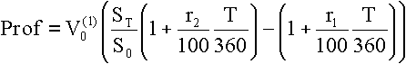 Здесь St - курс второй валюты относительно первой Vt(1)=St Vt(2) в момент времени t, Vt(1) - текущая стоимость первой валюты, ri, i=1,2 - ставка процента для i-ой валюты. Суммарный выигрыш получается при ST>S0 и r2>r1.