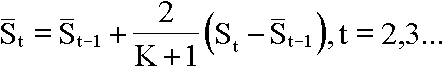 где K - число предыдущих дней (порядок скользящего среднего), Sk - цена k-го торгового дня.