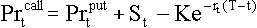 [0,T] должна иметь место формула паритета цен для опционов купли и продажи европейского стиля на один и тот же базисный актив с одинаковой ценой исполнения: