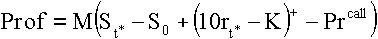 При покупке опционов купли, основанных на доходности, инвестиции будут защищены от больших потерь, не исключая роста стоимости портфеля при снижении процентных ставок. Прибыли/убытки от полного хеджирования портфеля облигаций рассчитываются по формуле