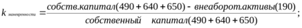 Увеличение коэф-та маневренности означает, что доля собственного капитала, вложенная в наиболее мобильные активы, увеличилась.