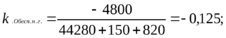 коэф. обеспеченности собственными средствами на конец отчетного периода < 1;