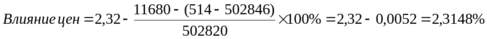 Влияние цен= расчетная рентабельность – расчетная рентабельность