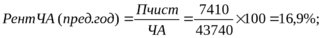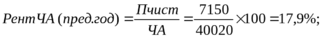 Используя данные таблицы 16, рассчитаем влияние рентабельности чистых активов за отчетный год по сравнению с предыдущим годом. Рассчитаем рентабельность чистых активов: