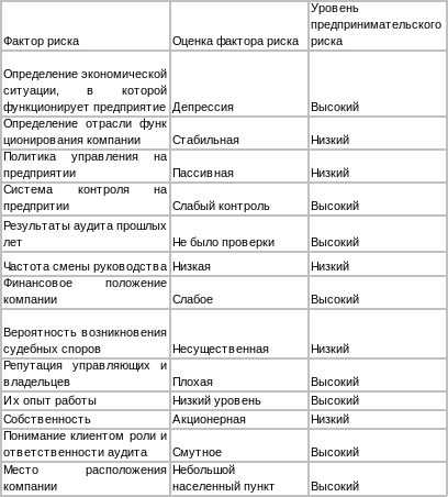 Предпринимательский риск - влияние не зависящих от аудитора обстоятельств деловой активности клиента на ухудшение его финансовых позиций в то время как аудитор подтвердил их устойчивость.
