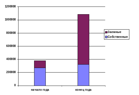 рис. 3.2 структура собственных и заемных средств на начало и на конец года