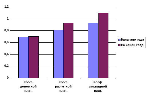 Таким образом, все три коэффициента платежеспособности свидетельствуют о том, что платежеспособность предприятия находится на должном уровне и является реально обеспеченной. Предприятие отвечает параметрам, необходимым для осуществления с ним кредитных и других финансовых взаимоотношений.