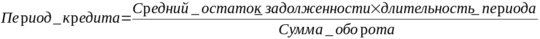 Для определения среднего периода кредита за год в числителе формулы будет 360 (количество дней в периоде), за квартал - 90, за месяц - 30.