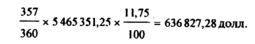 После этого подсчитываем средневзвешенную продолжительность периода погашения нашего набора векселей: 918,8 дней или 2,6356 лет (на базе 360-дневного года). Чтобы получить доход, надо разделить процентную прибыль на сумму учтенных векселей, а результат — на средневзвешенную продолжительность периода погашения: