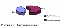 На конец года внеоборотные активы составили 60%, что отражено на рисунке 1.