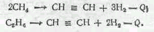 Ацетилен получают путем обработки карбида кальция водой (СаС2 + 2Н2О ->Са(ОН)2 + С2Н2) или путем термоокислительного крекинга при 1400—1500С различных углеводородов (СН4, С2Н4 и до.)