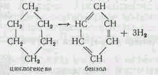 Нафтеновые углеводороды при нагревании дегидрируются, образуя ароматические углеводороды: