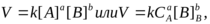Где V – скорость реакции; k – константа скорости реакции (при [А] = [В] = 1 моль / п k = v – численно), [А] и С [В] и С – разные формы обозначения концентрации, a и в – стехиометрические коэффициенты реагентов А и В в уравнении реакции.