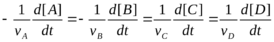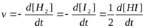 знак минус ставят, когда скорость выражается через убыль концентрации исходного вещества, чтобы скорость была положительной величиной. Скорость выражается через прирост концентрации иода водорода, разделана на стехиометрический коэффициент 2, чтобы все три выражения были численно одинаковы.