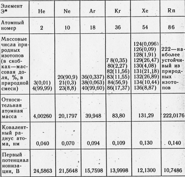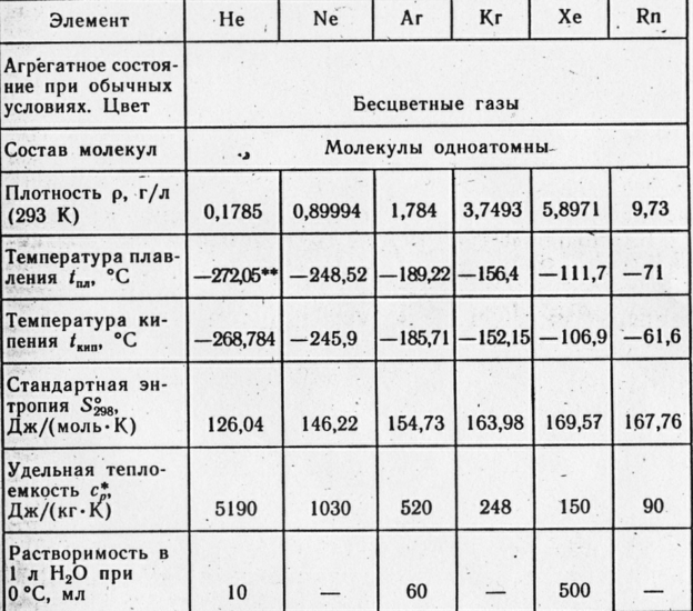 3.1 Физические свойства инертных газов.