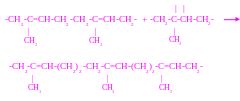 При этом свободные валентности средних углеродных атомов смыкаются и образуют двойные связи в середине молекул, ставших теперь уже звеньями растущей цепи.