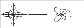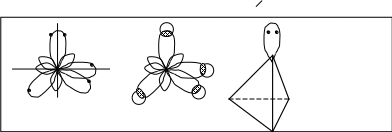 Так, у атома углерода в результате перестройки s-облако за счет своей плотности и частично плотности р-облаков приобретает форму односторонней гонтели. Аналогично все р-облака за счет своей плотности и остаточной плотности s-облака становятся такими же по форме и плотности.(рис.4.12.).