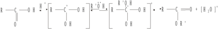 RCOOH + R’OH ↔ RCOOR’ + H2O.