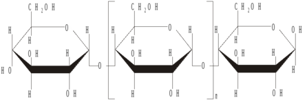 Целлюлоза представляет собой полисахарид, построенный из глюкозных звеньев. Ее строение напоминает строение амилозы, т.е. она тоже состоит из остатков глюкозы, но связаны они между собой β-гликозидными связями, а не α-гликозидными, как в амилозе.